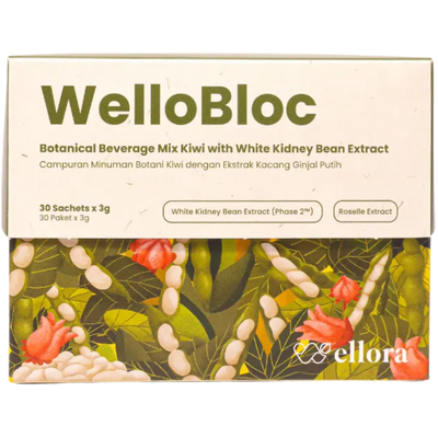 Each tasty, convenient sachet of WelloBloc combines patented Phase 2 ™ White Kidney Bean Extract with natural botanicals to help block carb absorption and reduce its impact on your body.